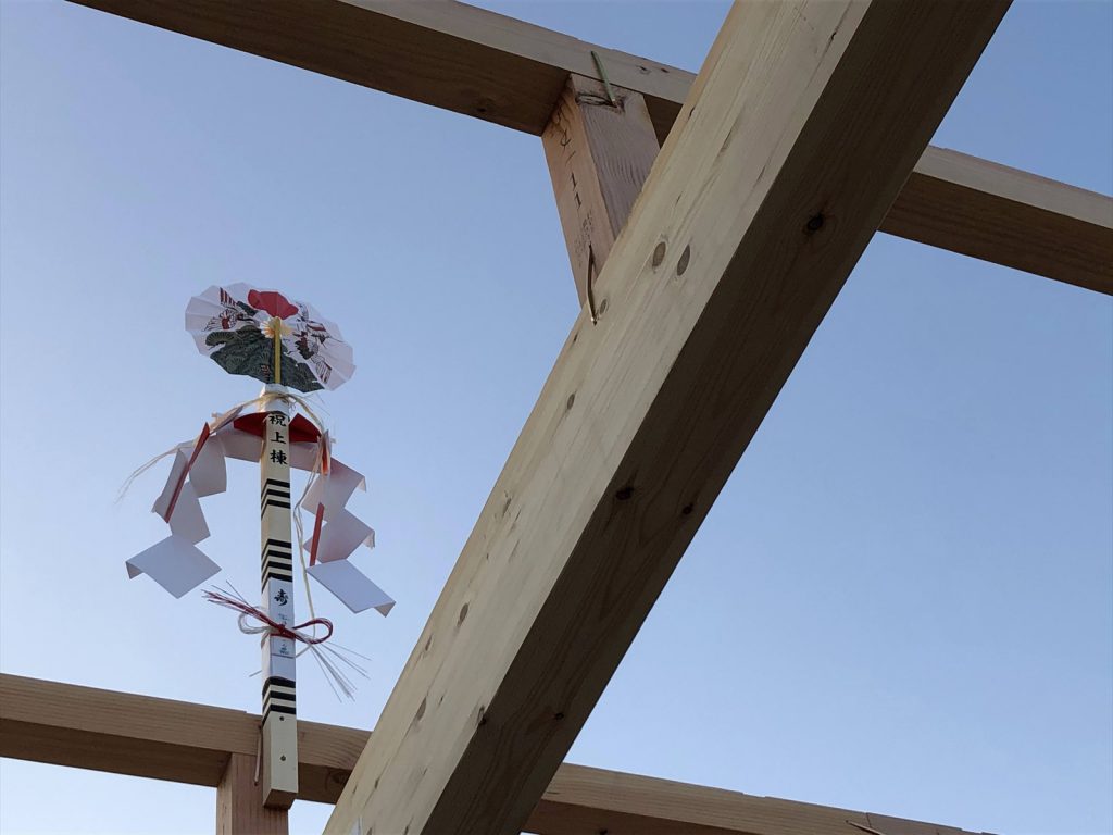 風になびく、上棟飾り